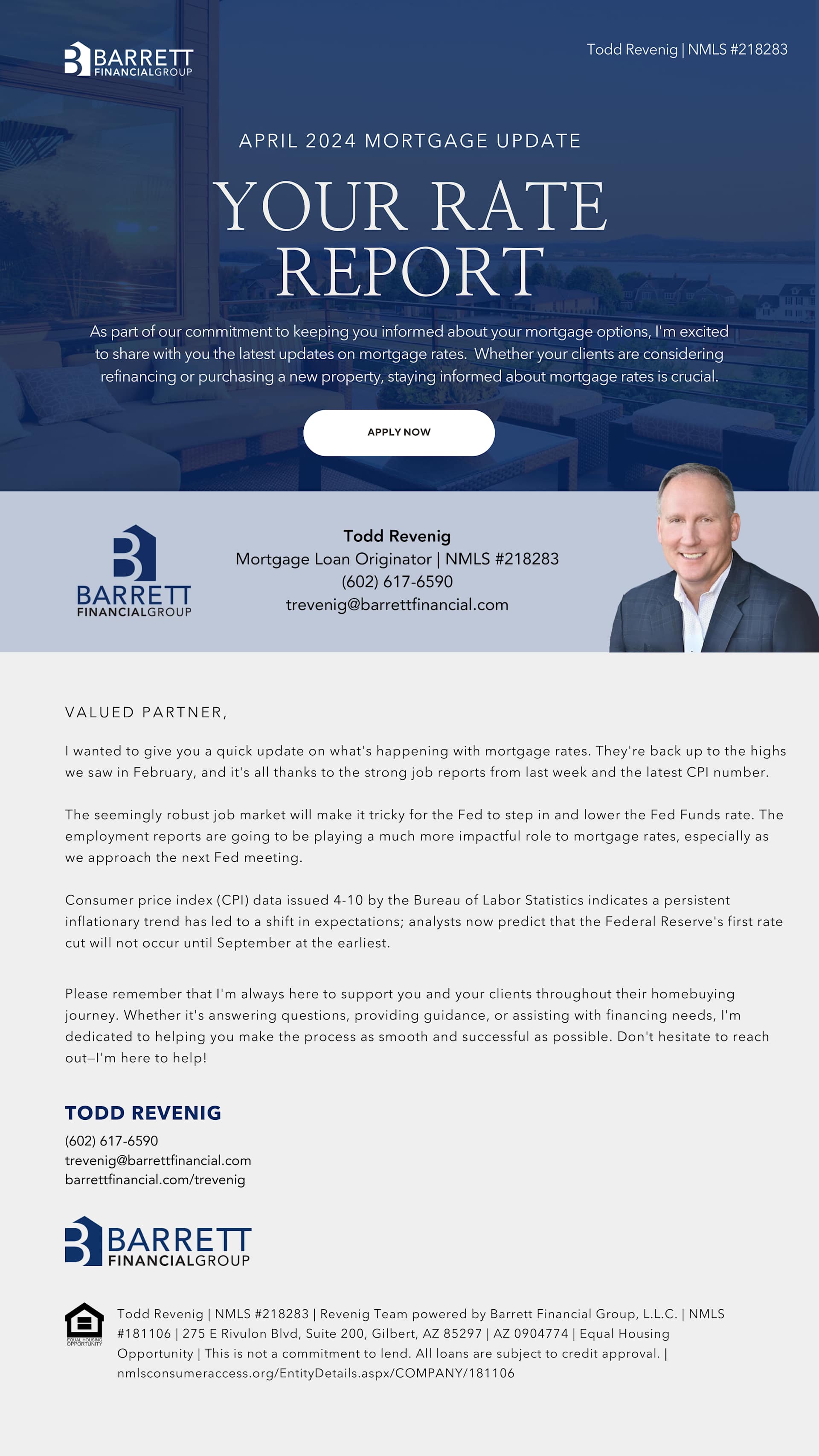 Below is a quick update on the current state of the mortgage market, courtesy of one of our trusted mortgage partners, Todd Revenig. When thinking about taking the plunge to buy or sell property, the more you know, the better off you are. It's our goal to provide you with the most up-to-date information regarding the mortgage markets and their impact on housing pricing and availability.