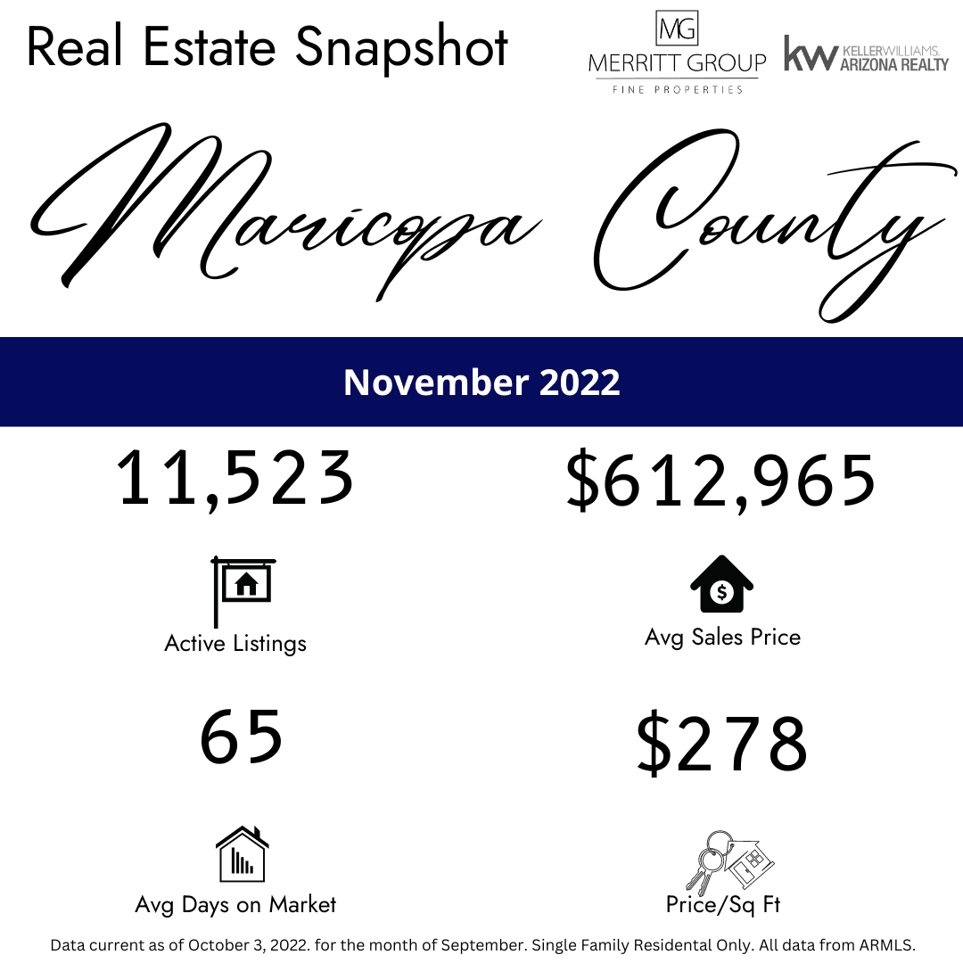 Across all areas of the Valley, we are seeing some pretty significant changes from this time last year. On average, the number of active listings are up 181% from last year, but the number of active listings has fallen off nearly 7% from last month. Sellers who may have waited a tad bit too long before listing their homes during the hot markets a few months ago are hitting a brick wall as many buyers are priced out of the market by increasing mortgage rates. You can see this drastic shift in the number of Pending and Under Contract listings - down 45.1% and 45.3%, respectively - over last year, and advancing the slide from just last month in October. As expected, Closed Sales are also down about 45% year-over-year.