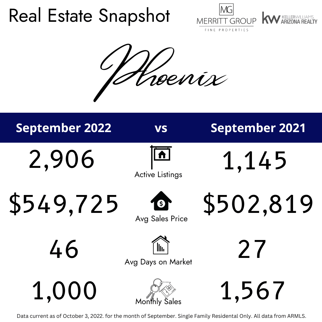 What a difference a year makes! The real estate market looks very different for buyers and sellers as we enter the final quarter of 2022. For buyers, the good news is that price reductions are on the rise. When mortgage rates hit 7% about a week ago, a whopping 4,427 price reductions were recorded in the Greater Phoenix housing market. This represents nearly a quarter of all active properties in the MLS. More than half of those price reductions were by $12,000 or more.